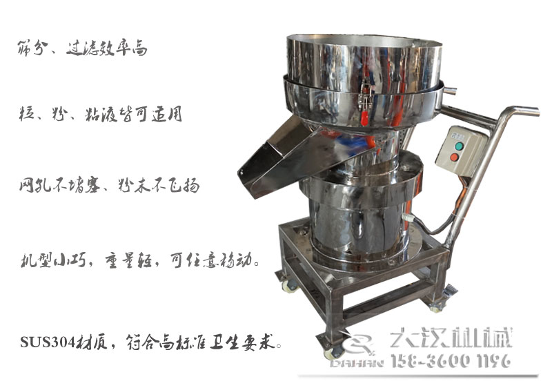 過濾篩是一種適用于各行業(yè)單層,小顆粒、粉、粘液處理生產(chǎn)量小或者雜質(zhì)少物料的振動篩分、過濾設(shè)備。大漢牌推車式450型過濾篩,在原有過濾篩的基礎(chǔ)上,配備了小推車,推車與機(jī)身融為一體,使本身機(jī)型小巧的450過濾篩移動起來更加的方便,省時省力。