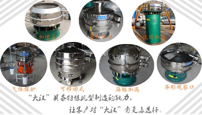 "大漢"DH系列旋振篩產(chǎn)品,經(jīng)營多年,獲得大量的一線客戶反饋建議,在自有成熟的篩機(jī)制造技術(shù)基礎(chǔ)上,大漢機(jī)械工程師以滿足客戶需求為標(biāo)準(zhǔn),多次技術(shù)改進(jìn),篩分效果更加優(yōu)越,采用動力激振器,三維動力更加突出,適用范圍更加廣泛,大漢機(jī)械公司可根據(jù)客戶需求設(shè)計(jì)特殊型號,無論物料是干是濕,是精細(xì)是粗糙,是比重大是比重輕,0-400目都可以篩選,不管是液態(tài)的,還是漿狀的0-600目都可以過濾."大漢"旋振篩系列產(chǎn)品同時(shí)配備專門的篩網(wǎng)清理裝置,不堵網(wǎng),過網(wǎng)率和處理精度得以有效提高."大漢"具備特殊型號制造的能力讓顧客對"大漢"有更多的選擇.